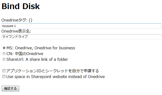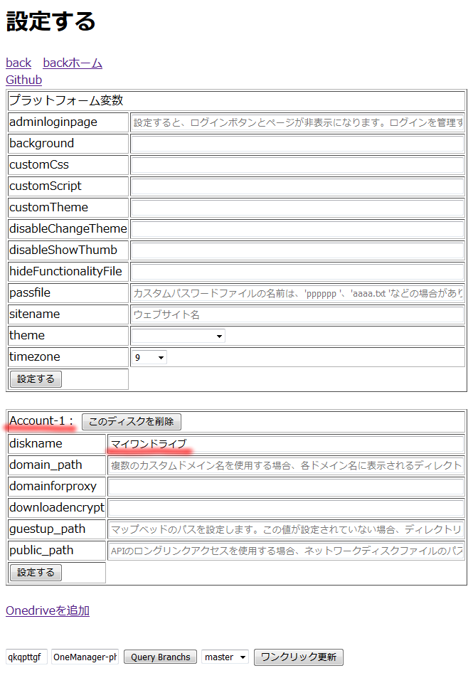 ・「Onedriveタグ」は入力必須。設定した値がURLになります(https://AppName.herokuapp.com/Tag)