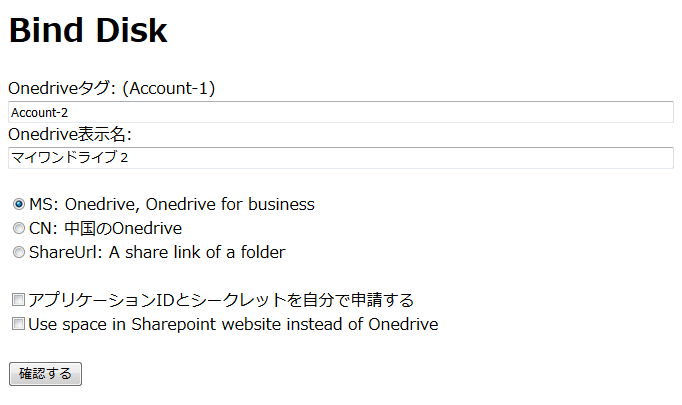 すると、なぜかトップページに戻ってきてしまうことがありますが、もう一度設定ページに入り「Onedriveを追加」で先ほどと同じタグを入力すれば問題なく追加できると思います。